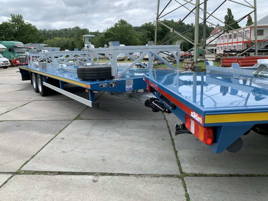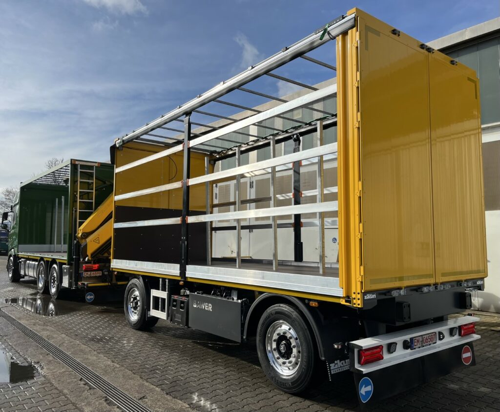 Anhänger von zikun können mit verschiedenen Aufbauten ausgestattet werden, darunter Curtainsider, Kofferaufbauten, Plattformanhänger oder Spezialaufbauten. Auch Halterungen für Mitnahmestapler und die sichere Aufnahme von Containern sind möglich, um den Anhänger exakt auf die Ladung abzustimmen.