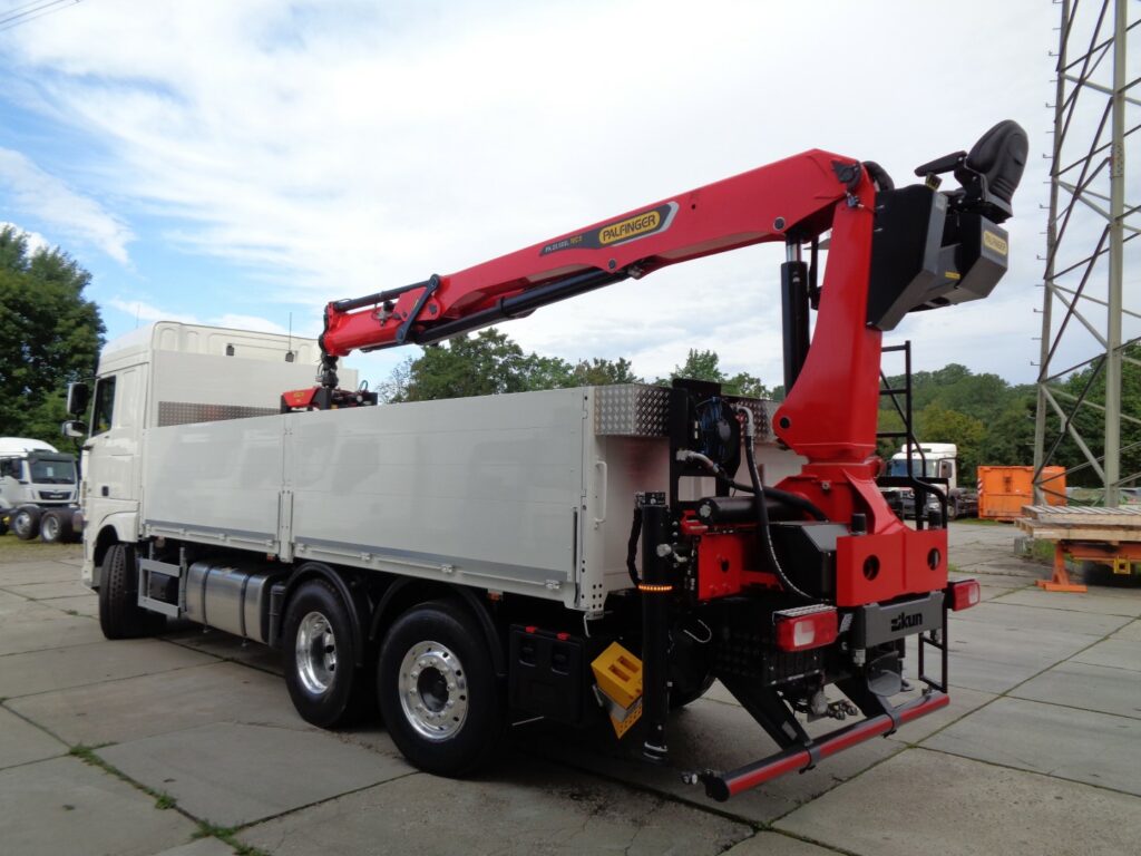 Baustoffaufbauten können in verschiedenen Längen und Ausführungen konfiguriert werden. Mögliche Optionen sind unter anderem Alu-Bordwände, verstärkte Ladeflächen, Werkzeugkästen oder Vorrüstungen für Ladesysteme. Zusätzlich kann ein leistungsstarker Ladekran integriert werden, um Baustoffe direkt vor Ort heben und abladen zu können.